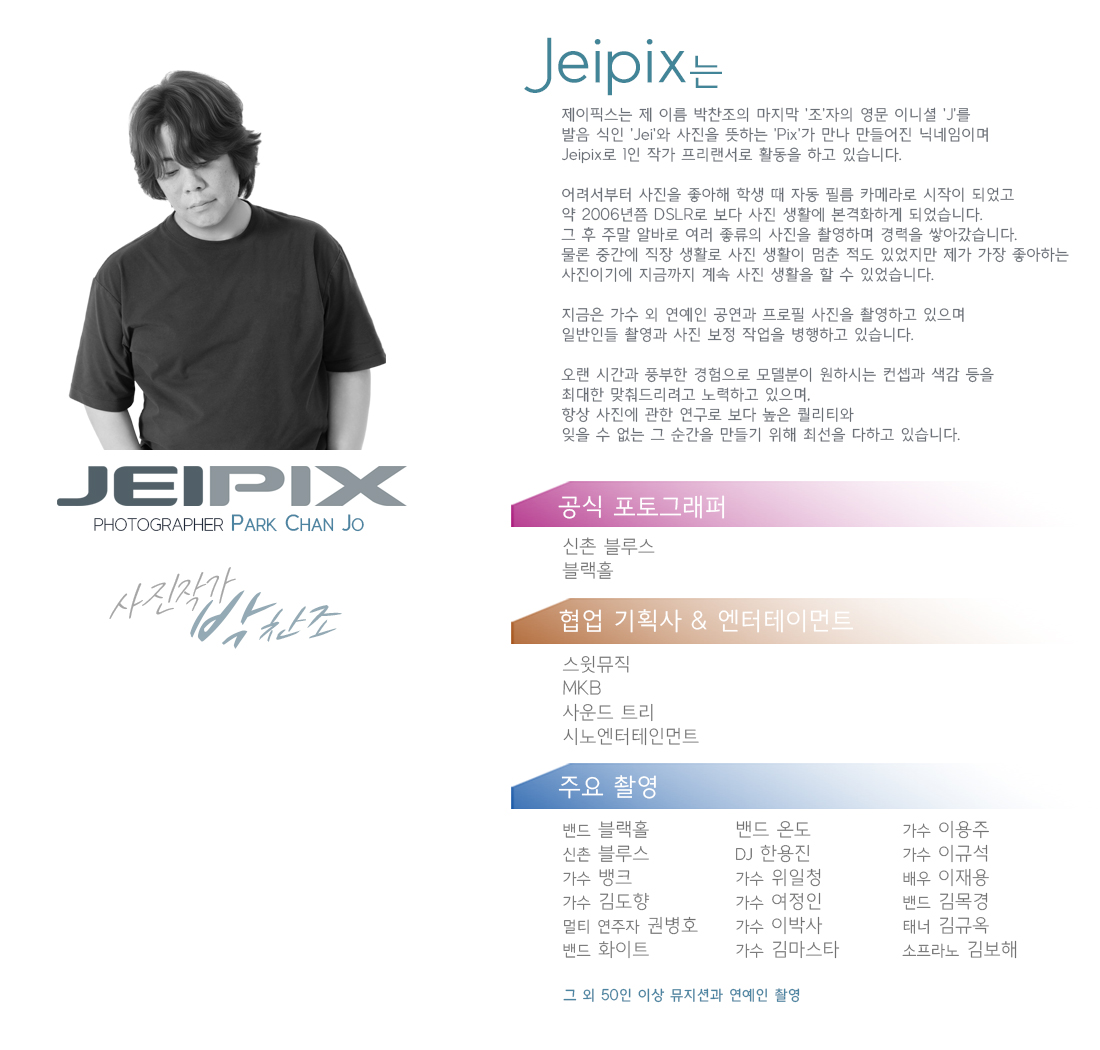 개인 프로필부터 가족사진 그리고 공연 행사 등에 따라 견적이 다르므로